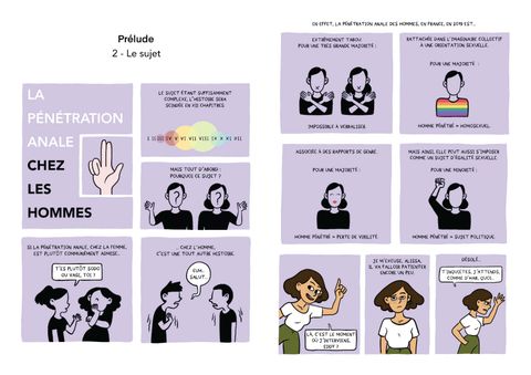 <em>L'homme pénétré</em>... Derrière ce titre détonnant se cache un tabou à la vie dure ! Dans ce livre, il est évidemment question de la pénétration anale masculine - en particulier chez les hétéros... -, une pratique qui, si on la décortique "en profondeur", recoupe bon nombre de problématiques clés de notre société contemporaine (genre, consentement, droit à la différence, respect de l'autre...).    Pour explorer ces thèmes, Martin Py et Zoé Redondo confrontent les points de vue de Johakim, Gaëtan, Alissa et Merwan, quatre personnages aux profils bien divers. Au fil d'une conversation amusante et didactique, chaque membre du "quatuor" livre et confronte son point de vue sur la question de la pénétration anale chez les hommes, mais aussi plus généralement sur les questions de sexualité et de genre.  En sondant les origines d'un plaisir transgressif, les personnages déconstruisent leurs préjugés respectifs et nos propres barrières, apportant des réponses aux questions essentielles sur la notion de virilité, de féminité, mais aussi d’amitié et de respect du corps.  À mettre entre les mains des curieux de tous genres !