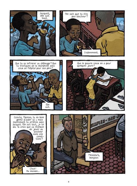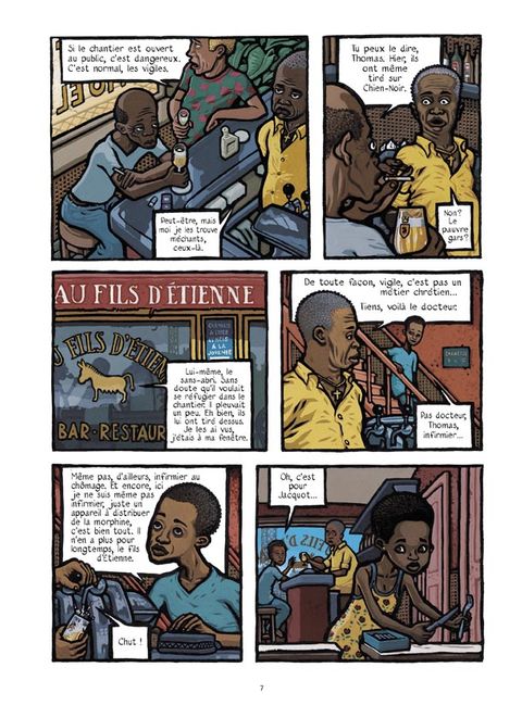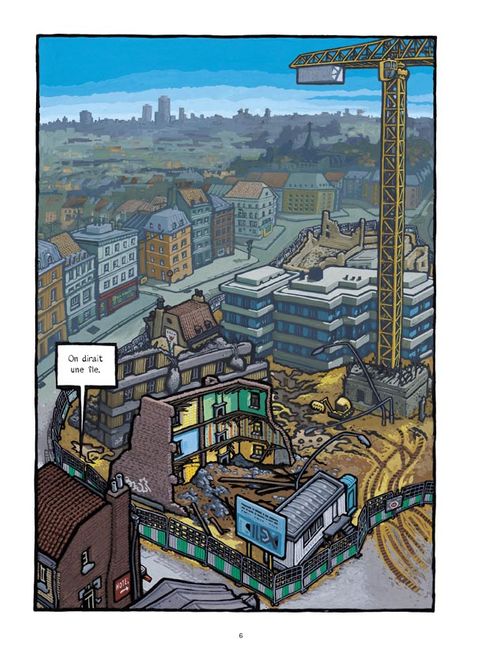 Un énorme chantier, entouré de palissades, griffe le quartier. On dirait une île. Dans le café-restaurant le jouxtant, la conversation va bon train : Les vigiles du chantier ont tiré sur Chien-Noir, le sans-abri. L'arrivée d'un gros homme, à l'air inquiétant et tenant en main un étui à violon, impose le silence. Il souhaite louer l'une des chambres du premier étage pendant quelques jours. Prenant à part Jacquot, la petite fille du propriétaire, l'homme est à la fois menaçant et affolé : Un homme demandera après moi, lui dit-il. S'il a une « sale gueule. une gueule de traître. s'il marche en claudiquant et en s'appuyant sur une canne avec le pommeau d'argent au bout, alors souffle dans ce sifflet, le plus fort que tu peux ! »... Le boiteux viendra plus tard, il s'appellera Jean Dargent. Et avec lui, le mystère s'épaissira, la peur s'insinuera et le danger s'installera...