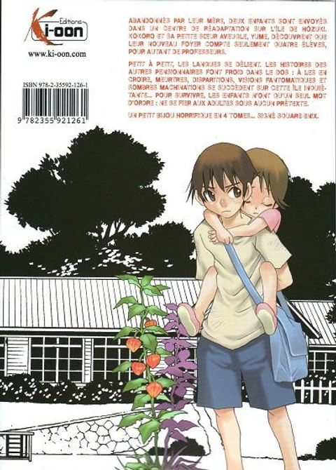 Abandonnés par leur mère, deux enfants sont envoyés dans un centre de réadaptation sur l'île de Hôzuki.?Kokoro et sa petite soeur aveugle, Yume, découvrent que leur nouveau foyer compte seulement quatre élèves, pour autant de professeurs. Petit à petit, les langues se délient. Les histoires des autres pensionnaires font froid dans le dos : à les en croire, meurtres, disparitions, visions fantomatiques et sombres machinations se succèdent sur cette île inquiétante... Pour survivre, les enfants n'ont qu'un seul mot d'ordre : ne se fier aux adultes sous aucun prétexte.