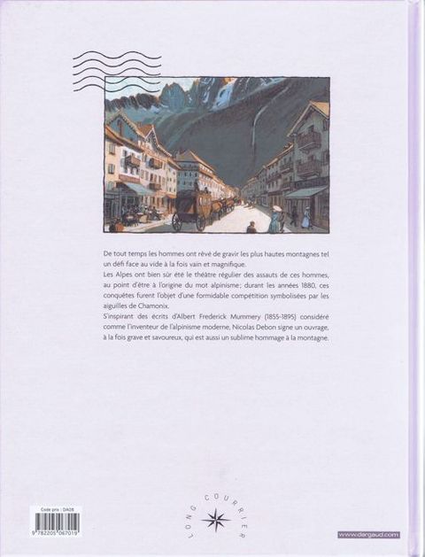 L'Invention du vide, c'est ce défi vain et pourtant magnifique lancé au vide par ces hommes qui, de tout temps, ont rêvé de gravir les plus hautes montagnes. Il faut dire que la montagne a ce don de rendre belles les tentatives des hommes à vouloir aller toujours plus haut. Parfois, elle ose se refuser à leur vanité, se faisant douleur et souffrance. Les Alpes ont ainsi été le théâtre régulier des assauts de ces hommes, au point d'être à l'origine du mot « alpinisme » ! Durant les années 1880, ces conquêtes furent l'objet d'une formidable compétition symbolisée par les aiguilles de Chamonix. S'inspirant des écrits d'Albert Frederick Mummery (1855-1895), Nicolas Debon raconte avec brio ces exploits inutiles et beaux à la fois. À la manière du Tour des géants, qui mettait en scène les cyclistes au début du siècle dernier, il raconte, de façon documentée et profondément humaine, cette épopée. À la fois grave et savoureux, cet ouvrage – qui reste d'abord une fiction – est aussi un sublime hommage à la montagne. L'Invention du vide est une aventure documentaire, mais aussi une bande dessinée servie par un graphisme original avec des couleurs directes parfaitement appropriées aux décors majestueux.