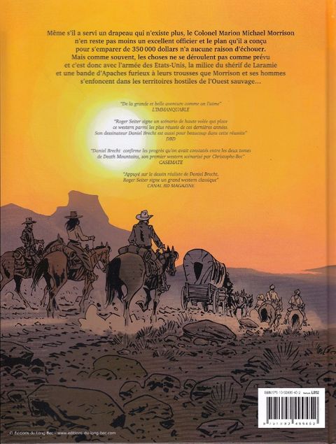 Même s'il a servi un drapeau qui aujourd'hui n'existe plus, le Colonel Marion Michaël Morrison n'en reste pas moins un excellent officier et le plan qu'il a conçu n'a aucune raison d'échouer. Avec ses hommes, il va attaquer ce fichu train, mettre la main sur les 350 000 dollars qu'il transporte, puis traverser la montagne pour rejoindre San Francisco et sauter sur le premier voilier en partance pour l'Australie. Une fois là-bas, lui et ses compagnons pourront enfin recommencer leur vie sur de nouvelles bases. Mais comme souvent, les choses ne se déroulent pas comme prévu. L'attaque du train est une boucherie et le détachement de l'armée qui escorte l'argent est massacré. Les chevaux qui devaient permettre aux assaillants de fuir sont volés par des Apaches. Enfin, pour se procurer de nouvelles montures, Morrison et ses complices mettent Laramie à feu et à sang. Et c'est donc avec l'armée des Etats-Unis, la milice du shérif de Laramie et une bande d'Apaches à leurs trousses que Morrison et ses hommes s'engagent finalement dans la montagne et s'enfoncent dans les territoires hostiles de l'ouest sauvage...