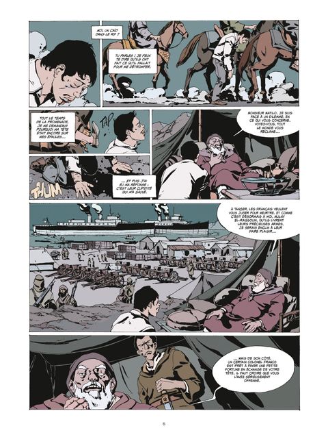 Le Rif s’est embrasé. Le Maroc entier menace de le suivre sur la voie de la liberté... Calixte, converti à l’Islam, est devenu un véritable chef de guerre sous le nom de « Khalil al Islami ». Léon, confronté au dilemme de sa vie, préfère l’amitié à la fortune et rejoint les rebelles. Mais face à l’armée rifaine se dressent désormais deux puissances coloniales : la France et l’Espagne, réunies pour écraser à tout prix la République du Rif. La guerre semble perdue d’avance... Peu importe. À défaut d’être vainqueurs, ils deviendront des légendes.Entre L'homme qui voulut être roi et Lawrence d'Arabie, L’Or et le sang est une formidable saga d'aventure, de guerre, de pouvoir et de trahison... Mais par-dessus tout, une émouvante histoire d'amitié entre deux personnages que tout oppose. À l’occasion de son entrée au catalogue Glénat et de la sortie du quatrième et dernier tome, la série se refait une beauté puisque les trois premiers albums seront réédités avec une nouvelle couverture et des bonus inédits ! L'Or et le sang a reçu un accueil très élogieux, public comme critique, à la parution de chacun de ses tomes, tous sélectionnés au festival d’Angoulême.La série confirme Fabien Nury (Il était une fois en France, Tyler Cross) comme l'un des meilleurs scénaristes de sa génération et dévoile le talent de Maurin Defrance, à l’origine de cette histoire. Elle révèle également deux dessinateurs montants : Merwan (Pour l’empire, le Bel Age) et Fabien Bedouel (Un long destin de sang, OPK) qui signent avec ce tome 4 l’album de la maturité.