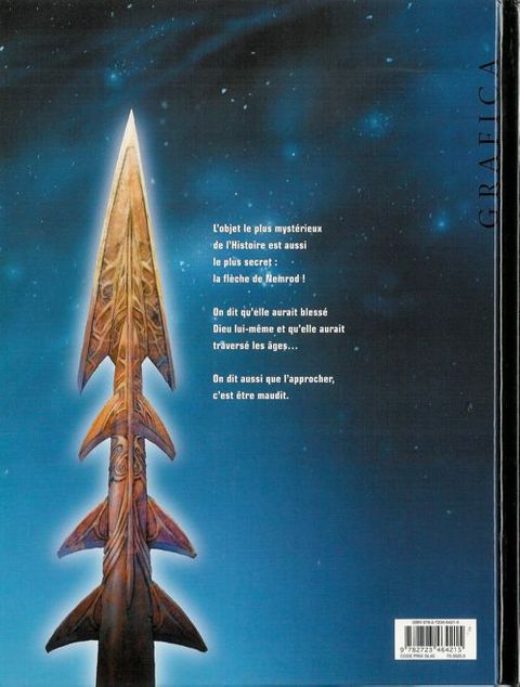 Elle aurait blessé Dieu lui-même... Elle aurait été l'instrument caché des puissants de ce monde : la flèche de Nemrod ! 1965. Île d'Harbor. L'écrivain Archibald Redmore, débarque avec une idée fixe en tête : comprendre comment Gabriel Slide, auteur méconnu du XVIIIe siècle, a pu, presque mot pour mot, écrire la même nouvelle que lui ! Une quête qui va lui permettre de croiser les pas d'un certain Morgan Sheperd, qui en 2129, dans la station spatiale Hadden, s'apprête peut-être à passer de vie à trépas... À moins que son contact avec la flèche de Nemrod ne continue à lui assurer l'immortalité... 5e tome de cette incontournable série d'anticipation, toujours menée par LF Bollée et son carquois de fins dessinateurs (Griffo pour la partie future et Mangin pour les «swinging sixties»).