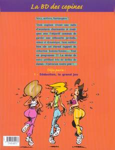 Vous avez aimé "La Bd des Copines, Séduction, le grand jeu", la nouvelle série BD spécialement pour les filles lancée l'année dernière par les Editions Vents d'Ouest, dans la veine de "Bridget Jones" et relevée d'une touche de séries TV cultes, telles "Ally Mc Beal" et "Sex and the City" ? Eh bien cette série est de retour ! Cette fois-ci nos trois drôles de dames, Jennifer (toujours à la recherche de l'homme idéal), Sophie (vivant en couple et enceinte de son premier enfant) et Pascale (en crise avec sa fille Audrey de 15 ans revenue à l'improviste vivre sous son toit) ont un objectif commun : "opération ventre plat", ou comment faire pour être bien dans sa peau et garder une silhouette juvénile, mince et dynamique, avec toujours en tête ce sempiternel rapport de séduction Homme/Femme.Tout un programme, où les gags de cet album mettent à l'honneur la forme et l'apparence physique, mais toujours avec humour ! Et à l'heure où la DHEA et la chirurgie esthétique font fureur, n'avons-nous pas tous et toutes, un petit quelque chose de Jennifer, Sophie & Pascale... oeUne bande dessinée drôle, légère, impertinente et dans l'air du temps... par trois coquines qui ne se prennent décidément pas au sérieux !\0
