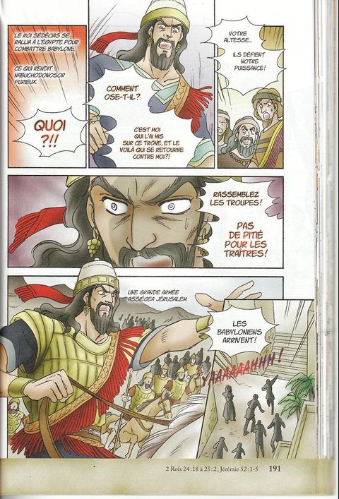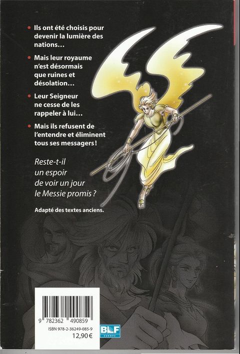 Ils ont traversé le désert en suivant la flamme.Ils ont purifié la terre promise par le feu. Mais le peuple choisi se détourne.Il adore les faux dieux et capitule face aux envahisseurs ! Survivront-ils jusqu'à la venue de l'Élu ? Pourquoi est-ce un livre incontournable ? - Le succès de La Bible Manga ne faiblit pas. Plus de 2 millions d'exemplairesimprimés à ce jour. dont plus de 150 000 exemplaires vendus dans lemilieu francophone. - La saga est entièrement réalisée par deux mangakas japonaises. - Lors de leur passage en France. les auteures. Kozumi Shinozawa et Ryo Azumi. ont été très appréciées au Salon du livre 2012 à Paris. Denomeux retours encourageants ont été faits par plusieurs magazinesspécialisés dans la BD manga et aussi par des médias généralistescomme Animeland. France 2 et RTS. - Ce livre est incontournable car il marquera la fin de la série La Bible Manga !