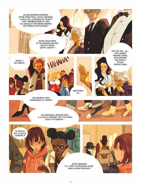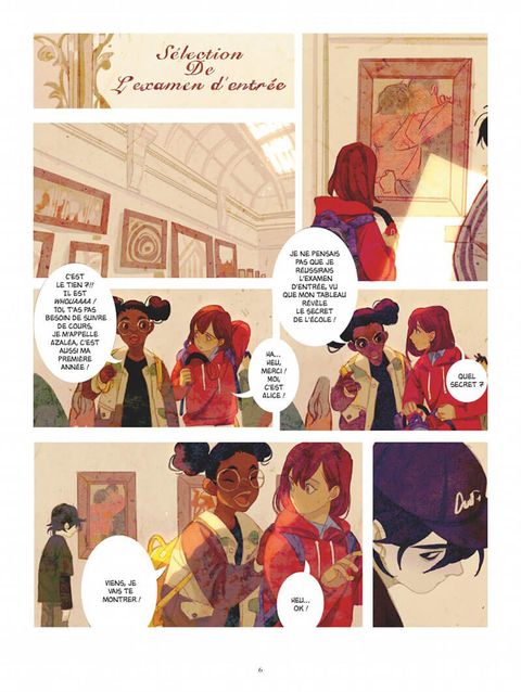 Un secret trop bien gardé…Alice qui adore dessiner, va enfin faire sa rentrée dans une nouvelle école d’art. Dès son arrivée, elle se lie d’amitié avec Azalea, une jeune fille un peu fantaisiste qui a déjà sa petite théorie : quelque chose ne tourne pas rond dans cet établissement. Elle a bien l’intention de découvrir ce qui se trame et décide de commencer à chercher du côté de la bibliothèque. Malgré les idées farfelues de sa camarade, Alice accepte de se prêter au jeu. Il est vrai que la bibliothécaire ressemble étrangement à un zombie et que Tio, son assistant a l’air totalement inexpressif... on dirait presque un vampire. Tout s’éclaire le jour où les deux amies découvrent ébahies, les souterrains de l’école ! Leur exploration va les mener jusqu’à une salle dédiée à d’étranges cérémonies. Certains indices ne trompent pas… Se pourrait-il que l’école soit dirigée par un groupe de Vampires. Mais que veulent vraiment ces vampires, et à quoi peut bien servir cette école ? Un premier tome savoureux, plein d’énigmes et de suspense qui donne envie d’accompagner les filles dans leur aventure, le tout mis en scène par un dessin raffiné aux couleurs pétillantes.