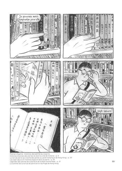 Les lecteurs les plus fidèles se souviennent de Chihoi, auteur hongkongais qu'Atrabile a eu le plaisir de publier il y a quelques années (A l'horizon, Le Train, Détournements). Chihoi, auteur rare et précieux, nous revient aujourd'hui avec La Bibliothèque, un livre où l'on retrouve certains éléments caractéristiques de son travail : un trait doux tout en rondeur et en nuances, des récits poétiques qui se lisent comme des rêves, et un amour assumé pour le fantastique et la métaphore. Mais les différentes histoires, interconnectées et enchâssées, qui composent La Bibliothèque ne sont pas que des fables borgesiennes, oniriques et mystérieuses ; ce sont également des récits aux accents politiques, et on devine aisément que les personnages de censeurs et les disparitions énigmatiques qui parsèment le livre sont autant de commentaires et de références à la situation actuelle de Hong Kong, et aux bouleversements que subit sa société. Dans le livre de Chihoi, la bibliothèque n'est pas qu'un lieu dédié à la connaissance, feutré et agréable ; c'est un lieu de pouvoir qui abrite bien des secrets, un lieu de manipulation dont on n'est pas sûr de sortir, un endroit où règne aussi l'arbitraire et l'imprévisible. A l'arrivée, La Bibliothèque propose aussi bien une réflexion sur un territoire en pleine mutation qu'une déclaration d'amour au livre, cet objet de savoir et de mémoire, si propice au voyage intérieur. "Est-ce là une allégorie de la société hongkongaise dans son ensemble ? On pourra en lisant entre les lignes (ou les cases) retrouver les échos des préoccupations de l'auteur – la disparition, l'oubli de la culture locale, la cession de la ville et de son histoire aux promoteurs immobiliers, l'engloutissement de l'ancienne colonie britannique par Pékin." (Extrait de la préface de Voitachewski)