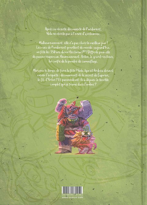 Cette histoire continue de plus belle !!! Cela fait plaisir de lire une suite qui tient ces promesses. On continue d'explorer Pandorient avec Nola à travers les déboires de Cyprien. Une histoire contemporaine avec une trame de rackettage qui peut parler facilement à nos enfants.