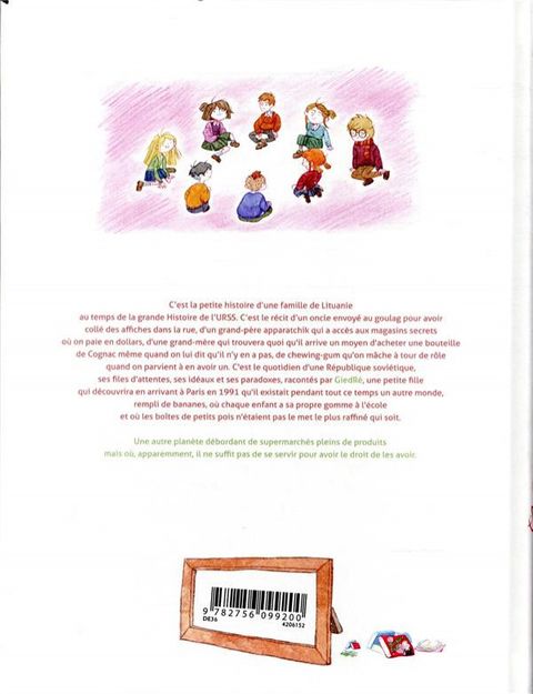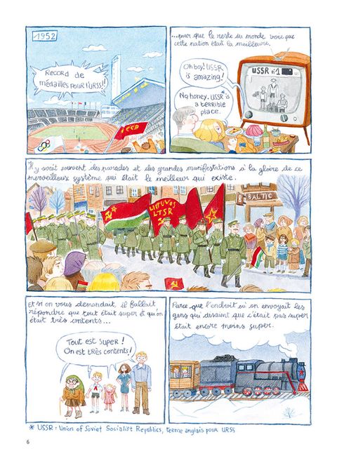 Histoire vécue par l'artiste Giedré enfant, lors de son départ de l'URSS pour la France pendant la chute de l'URSS. Réussi à être drôle et touchant malgré un quotidien difficile. Permet de se faire une idée de ce qu'était la vie de Mr tout le monde lors de cette époque. (...) Voir le commentaire
