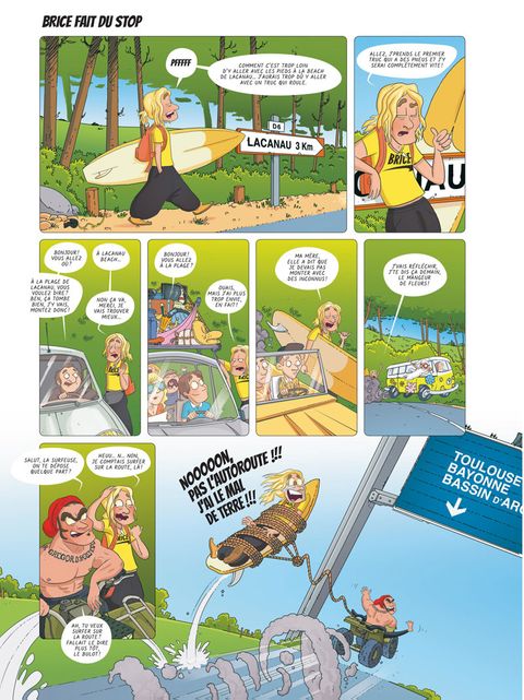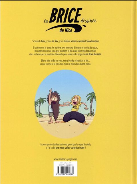 Je m'appelle Brice, je viens de Nice, je suis surfeur winner ascendant snowboardeur. Si comme moi, tu aimes les histoires avec beaucoup d'images et un max de casses, les aventures avec des gros méchants et des super héros trop beaux (moi), alors n'attends pas la prochaine déferlante pour surfer sur les pages de ma Brice dessinée. Elle va faire briller tes yeux, rire ta bouche et braïciser ta life... un peu comme si tu étais moi, mais en moins bien