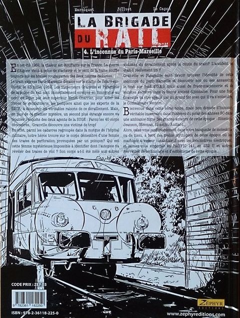 En cet été 1962, la chaleur est étouffante sur la France. La Guerre d'Algérie vient à peine de s'achever et que le vent de la haine souffle toujours sur les braises rougeoyantes des deux nations déchirées. Le train express Paris-Marseille déraille sur le viaduc de Velars-sur-Ouche, le 23 Juillet 1962. Les inspecteurs Granville et Pigagniole de la police du rail sont immédiatement envoyés en Bourgogne au nord de Dijon par leur supérieur Henri Charrier, pour aider les forces de gendarmerie, les pompiers ainsi que les experts de la SNCF, à découvrir les véritables raisons de ce déraillement. Mais, en plus de ce premier mystère, un second plus étrange encore va troubler l'enquête des deux agents de la SUGE : Parmi les 40 corps dénombrés, Granville découvre une victime de trop! En effet, parmi les cadavres regroupés dans la morgue de l'hôpital militaire, notre héros trouve sur le corps démembré d'une femme, des traces de perforation provoquées par un poinçon? Qui est cette femme mystérieuse impossible à identifier dont l'autopsie va révéler des traces de viol ? Son corps a-t-il été mêlé aux autres victimes du déraillement après la chute du train? L'accident en était-il réellement un? Granville et Pigagniole vont devoir trouver l'identité de cette inconnue du paris-Marseille et découvrir son ou ses assassins, le tout sur fond d'O.A.S mais aussi de Franc-Maçonnerie et de sociétés secrètes dans la bonne société Dijonnaise. Pour une fois, Granville va être épaulé par un grand flic avec qui il va s'entendre, le Commissaire Venturi...