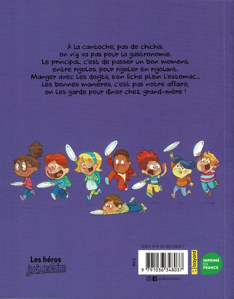 A l'heure du déjeuner, il ne faut pas paniquer,La Cantoche, c'est fastoche ! On retrouve les copains, on attrape un plateauQuel que soit le menu, c'est toujours du gâteau !Et si vraiment, ça ne va pas, bataille de petits pois !