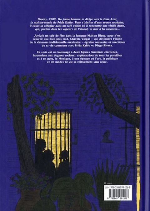 « Aujourd'hui, j'ai rencontré Chavela Vargas. Extraordinaire, lesbienne, elle est telle que je la désire... » écrit Frida Kahlo à son ami Carlos Pellicer. Ce livre retrace le récit pudique de leur relation, conté par Chavela, trente cinq ans après la mort de Frida, à un jeune touriste rencontré dans une cantina de Coyoacán, le quartier des artistes de Mexico, par une pluvieuse après-midi. Récit de leur vie à trois, dans la merveilleuse « casa azul » ou elle est arrivée un soir de fête, pour n'en repartir que deux ans plus tard. Frida a dix ans de plus qu'elle et Diego bien plus encore, et c'est avec un regard émerveillé et naïf de gamine, qu'elle les observe et boit leurs paroles, leurs gestes, leurs drames et leur passion. Cependant c'est vers Frida que va son profond attachement, Frida l'artiste, Frida la femme : «Bien que je l'admirais, mon amour pour elle était bien plus grand que mon admiration pour son art...». Elles ont en commun d'être rebelles, insoumises aux dogmes sociaux, exploratrices de tous les possibles, dans l'art, en amour, dans leur sexualité, leur vie...