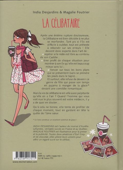 À bas les idées reçues ! Une jeune femme célibataire ne passe pas ses soirées en pyjama devant une comédie romantique à manger de la glace. Dans cet album sans concessions, les auteurs, toutes deux expertes en matière de célibat, prennent à rebours les clichés pour mieux nous décomplexer. Car ne pas être en couple, c'est avant tout mener une vie palpitante, qui n'est pas gouvernée par les horaires des biberons ou les soirs de match. Suivez les tribulations de la Célibataire, personnage haut en couleur qui perd rarement la face ou sa bonne humeur, et apprenez : - à repérer si le mâle est libre au contenu de son Caddie ; - à profiter de chaque situation pour montrer à son ex qu'on est beaucoup mieux sans lui ; - à foncer sur chaque bon plan qui se présente (sans se prendre les pieds dans le tapis du bar)... Une bonne tranche de rigolade entre copines, et tant pis pour les rides !