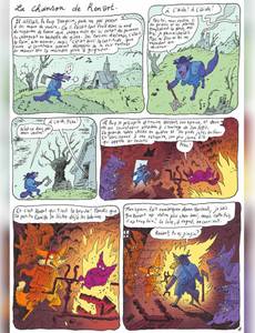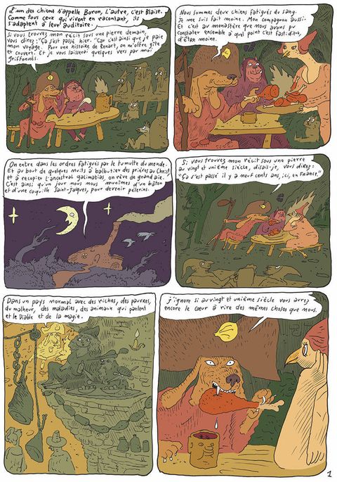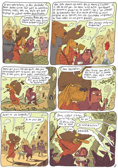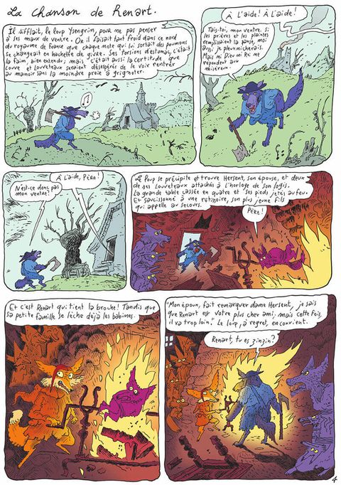 Blaise et Boron, deux chiens pèlerins, vivent en contant les fameuses histoires de Renart, avec « des riches, des pauvres, du malheur, des maladies, des animaux qui parlent, le Diable et de la magie ». Bouc émissaire tout trouvé du peuple affamé, Renart est cette fois précipité aux enfers. C’est là qu’il apprend, lors d’un repas familial réunissant Merlin L’Enchanteur, Marie de France, Le Diable et La Mort, que cette dernière souhaite détruire le monde ! Il supplie alors son seul ami, le loup Ysengrin, de l’aider à sauver l’humanité… Mais comment croire le plus célèbre des menteurs ?