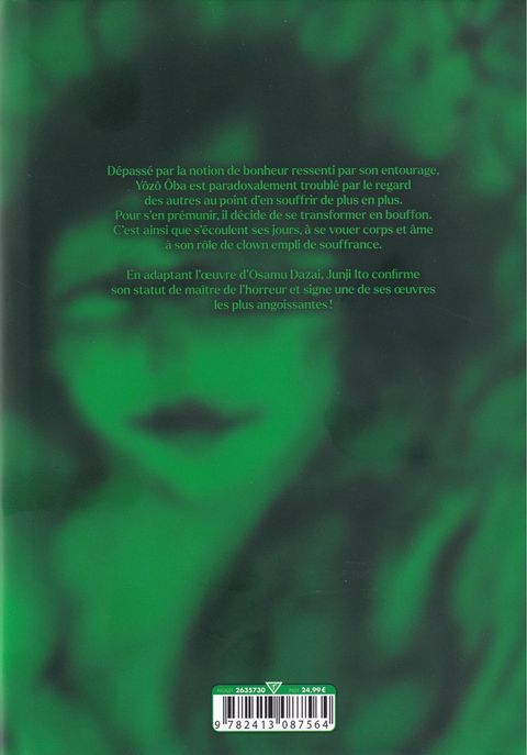 Résumé : Yôzô Ôba souffre énormément du regard que les autres portent sur lui et ne comprend pas le bonheur de son entourage. La solution qu’il finit par trouver pour s’en guérir : se transformer en bouffon. C’est ainsi que s’écoulent ses jours, à se vouer à ce rôle de (...) Voir le commentaire