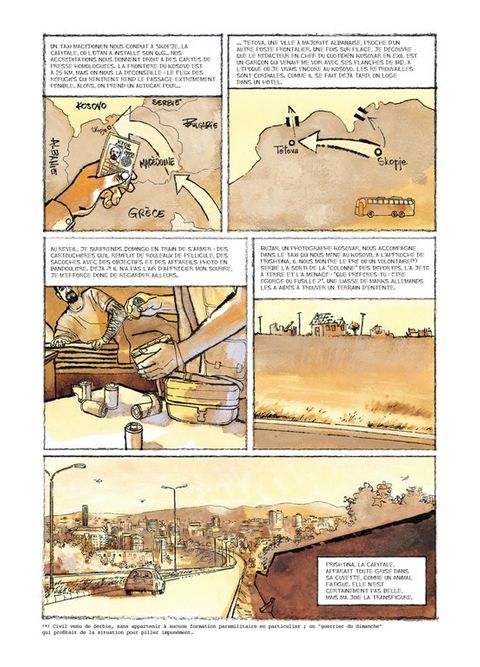 Juin 1999. À la fin du conflit au Kosovo, un magazine propose à Gani Jakupi – qui résidait alors en Espagne – de s’y rendre accompagné par un photographe, afin d’y faire un reportage sur son retour au pays. Une occasion inespérée pour lui de revoir ses proches. Mais si son objectivité vis à vis de son pays natal sera constamment mise à l’épreuve, sa subjectivité, elle, maintiendra tous ses sens en éveil. N’étant pas journaliste professionnel (il n’a exercé que pendant quelques années), il a le double avantage de pouvoir observer le milieu de l’information à la fois de l’intérieur, et de l’extérieur. Un pan de ce livre s’intéresse ainsi aux reporters-photographes. Si on est informés par les mots, ce sont les images qui modèlent nos sentiments. Elles ont le pouvoir de changer le cours de l’Histoire. Certains journalistes s’en servent en respectant une éthique pointue, et d’autres non. Gani découvrira qu’il est justement escorté par un photographe avide de sensationnalisme…