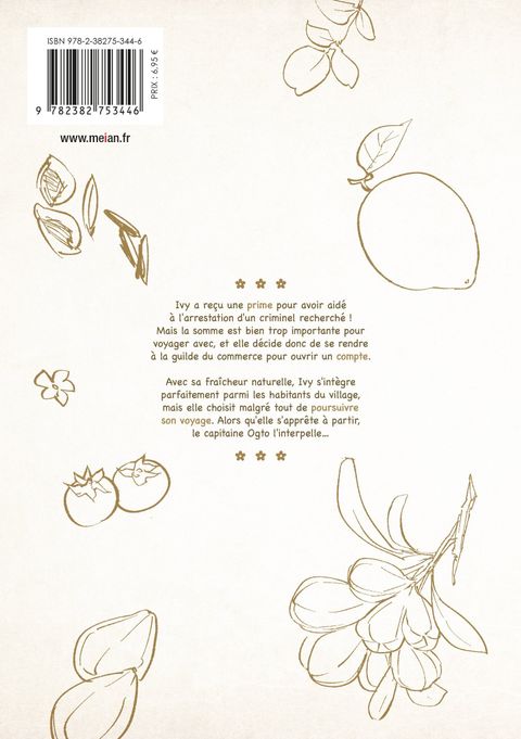 Des souvenirs chaleureux plein le coeur !Son regard se tourne vers des horizons inconnus !Ivy a reçu une prime pour avoir aidé à l'arrestation d'un criminel recherché !Mais la somme est bien trop importante pour voyager avec, et elle décide donc de se rendre à la guilde du commerce pour ouvrir un compte.Avec sa fraîcheur naturelle, Ivy s'intègre parfaitement parmi les habitants du village, mais elle choisit malgré tout de poursuivre son voyage.Alors qu'elle s'apprête à partir, le capitaine Oguto l'interpelle...