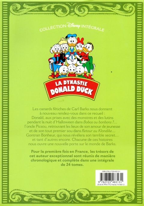 Retrouvez l'intégralité de l'oeuvre de Carl Barks, l'auteur le plus réputé et le plus talentueux des aventures de Donald, créateur de nombreux personnages dont l'incomparable Picsou. Aventure, mystère et magie sont bien sûr au rendez-vous de ces histoires, mais aussi humour, amitié et cacophonie familiale ! En introduction, chaque volume proposera un appareil critique de l'oeuvre de l'auteur, et chaque histoire sera précédée d'une courte fiche d'identité bibliographique permettant de la replacer dans le contexte de sa première publication. La mise en couleur de l'ensemble des bandes dessinées a été refaite à l'occasion de ces intégrales qui raviront les admirateurs de Carl Barks et les collectionneurs bibliophiles !