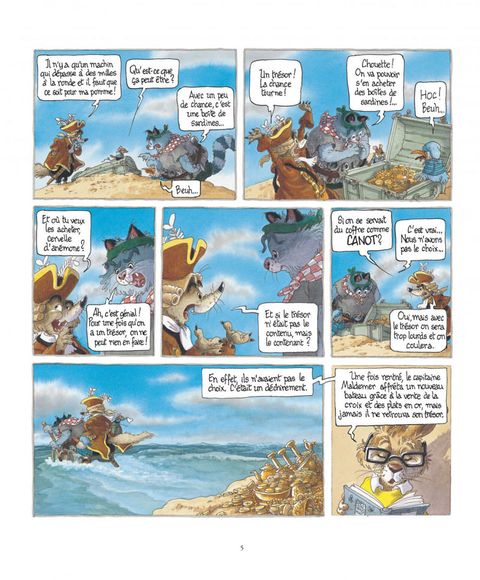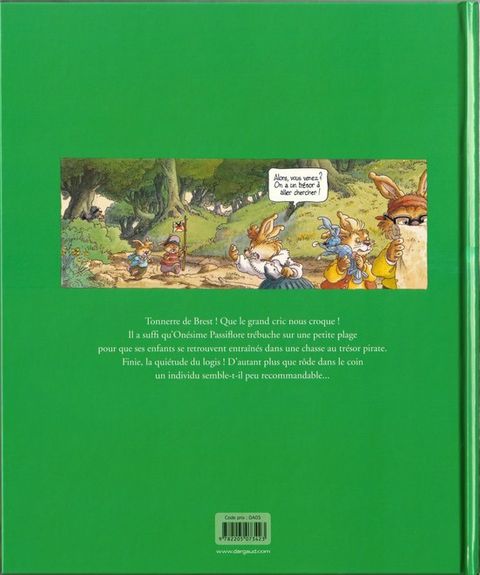 Ce soir, toute la famille est réunie au coin du feu et écoute avec ferveur Onésime raconter l'histoire du trésor caché de Patèle Passiflore, redoutable pirate. Le lendemain matin, les cinq petits décident de se promener du côté de la rivière, près de cette fameuse anse de la Miséricorde où serait caché le fameux trésor. Et là, incroyable ! Ils trébuchent sur une bouteille contenant une mystérieuse carte. Ni une ni deux, les petits Passiflore partent à la chasse au trésor !