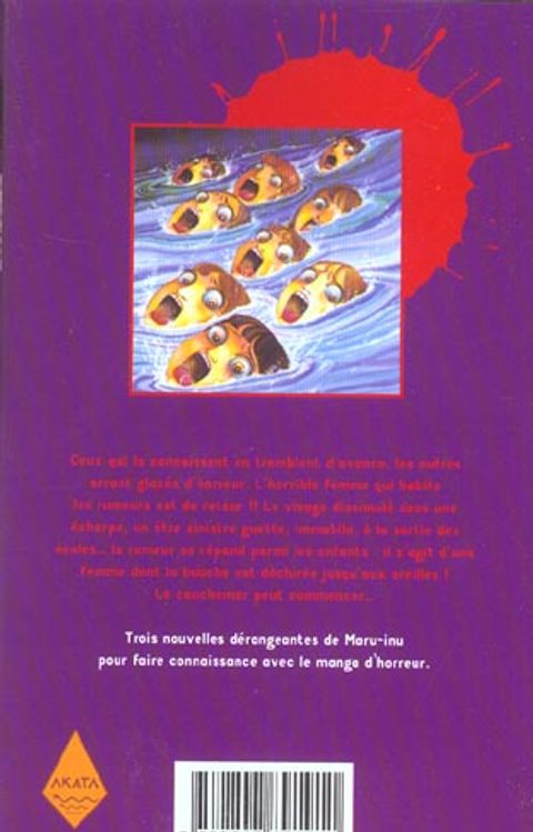 Trois nouvelles terrifiantes par la ""Reine du manga d'horreur"" ! Oserez-vous les lire ? Ce manga est un recueil de trois nouvelles d'horreur. On y découvre une femme à la bouche démesurément grande, prête à tout pour retrouver sa fille ; une multitude d'escargots qui ont élu domicile dans le corps d'une famille afin de contrôler leur chair et leur esprit ; et une jeune fille qui dissimule son atroce visage sous une couche de maquillage.\\0