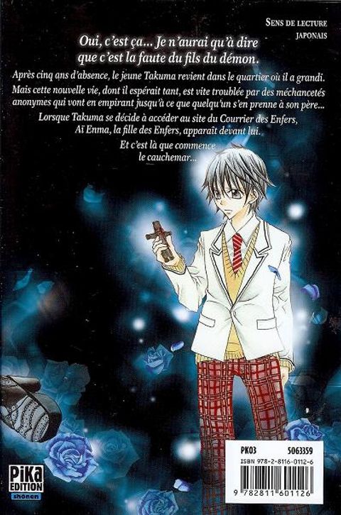 Oui, c'est ça... je n'aurai qu'à dire que c'est la faute du fils du démon. Après cinq ans d'abscence, le jeune takuma revient dans le quartier où il a grandi. mais cette nouvelle vie, dont il espérait tant, est vite troublée par des méchancetés anonymes qui vont en empirant jusqu'à ce que quelqu'un s'en prenne à son père... lorsque takuma se décide à accéder au site du courrier des enfers, aï enma, la fille des enfers, apparaît devant lui. et c'est là que commence le cauchemar...
