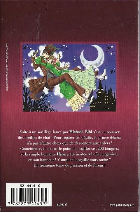 Alors que la vie reprend son cours mouvementé dans le manoir, du côté des Enfers, les démons ont échafaudé un plan machiavélique. Michaël, le petit chat envoyé à Hana par les aînés, a ensorcelé Bibi. L'élégant et arrogant démon a maintenant des oreilles de chat ! La seule solution pour retrouver sa splendeur d'antan : descendre aux enfers. Et justement, pour fêter les 200 ans de Bibi une grande fête a été organisée. Hana a même reçu un carton d'invitation !. Quel genre de surprise attend nos héros ? Oto Hisamu nous prépare un beau feu d'artifice !
