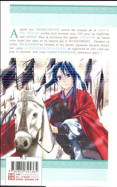 Fille de la reine officielle du pays de Â, Aki n'a de princesse que le titre. Seule pour s'occuper de sa mère malade et délaissée par le roi, elle doit supporter fièrement les mesquineries de la seconde reine. Un jour, elle croise le chemin de Hakusei, un jeune esclave aux yeux bleus qui décide de lier son destin au sien. Destin qui la mène à rencontrer Seitetsu, un commerçant qui la prend sous son aile et la forme aux "six arts" indispensables à une princesse. Mais ces nouvelles compétences se révèlent dangereuses lorsqu'elle ridiculise son demi-frère, le jeune prince, à l'occasion d'une partie de chasse, attirant sur elle et les siens la rancoeur du couple royal. Une rancoeur mortelle...