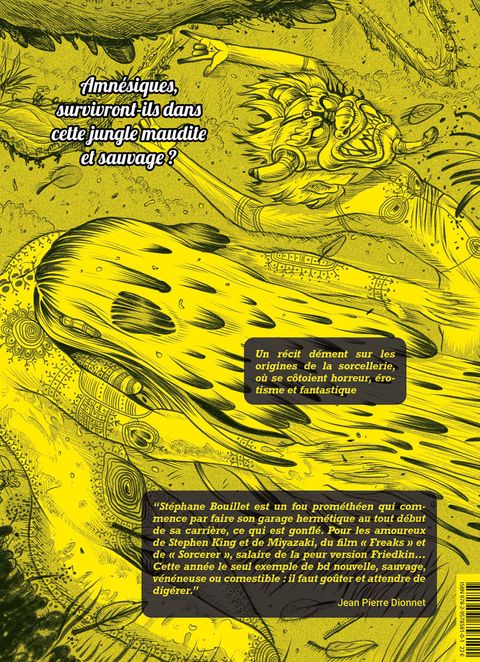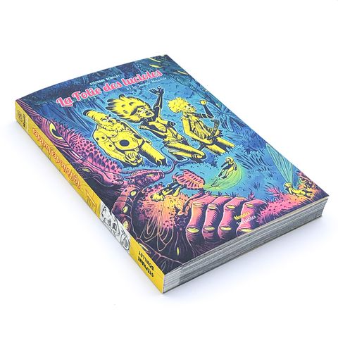 Amnésiques, survivront-ils dans cette jungle maudite et sauvage ? Une femme plantureuse noire, un gringalet peureux et un obèse au crâne phallique se réveillent pieds nus et à demi nus dans une jungle tropicale bourrée de bestioles. Ils ne se connaissent pas et n’ont aucun souvenir de leur vie passée… Fouiller leur mémoire est d’autant plus difficile qu'ils sont terrifiés par les bêtes sauvages qui peuplent cette forêt d'épouvante. Ils s’abandonnent alors à leurs vices et vertus profondément enfouis, faisant resurgir malgré eux une partie de leur antériorité. D'où viennent-ils ? Quel est cet enfer vert et mystérieux à l'espace-temps impermanent ? Un récit dément et animiste, où se côtoient horreur, érotisme et fantastique. Bien plus qu’une quête d’identité, La Folie des Lucioles nous propulse dans une voyage initiatique sur les relations humaines à travers les temps et les mondes : une plongée macabre, fétichiste, mystique et féministe dans la mémoire de la sorcellerie…