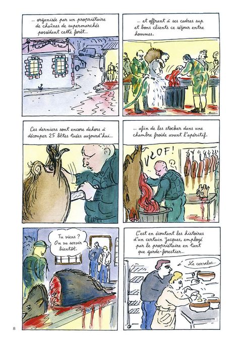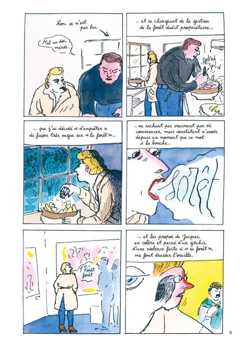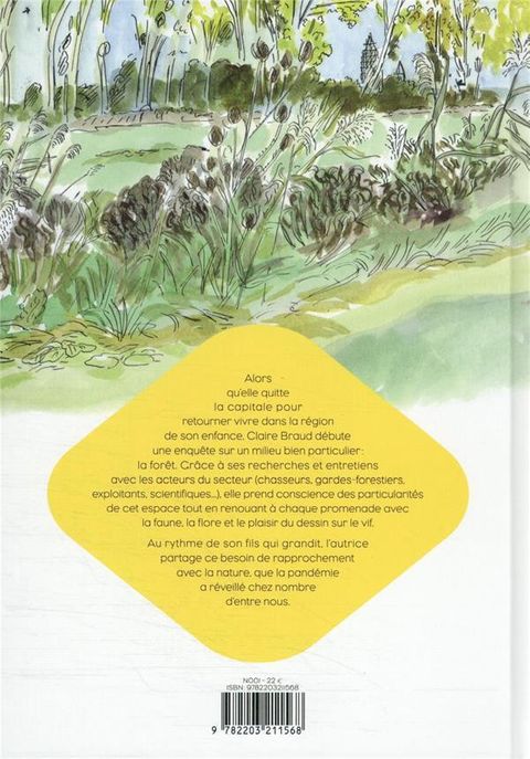 Alors qu'elle quitte la capitale pour retourner vivre dans la région de son enfance, l'autrice débute une enquête sur un milieu bien particulier, la fôret. Au fil des recherches et entretiens avec les acteurs économiques et sociaux du secteur (chasseurs, gardes forestiers, exploitants, scientifiques...), elle prend conscience que la réalité est assez éloignée de l'image d'Epinal qu'on en a souvent en tant que citadin. Ses pérégrinations en forêt sont autant d'occasions de se reconnecter à la nature, la faune, la flore et de pratiquer le dessin sur le vif, l'affut, l'aquarelle. Elle fera également la connaissance d'autres habitants des lisières de nos villes, les gitans. Au rythme des saisons et de son fils qui grandit peu à peu, Claire Braud partage sa quête d'un rapprochement avec "mère nature", que la pandémie actuelle a réveillé chez nombre de nos concitoyens. Entre enquête et introspection.