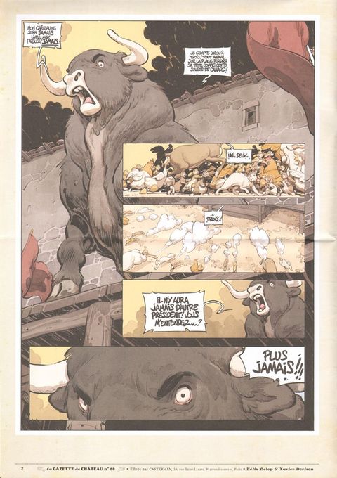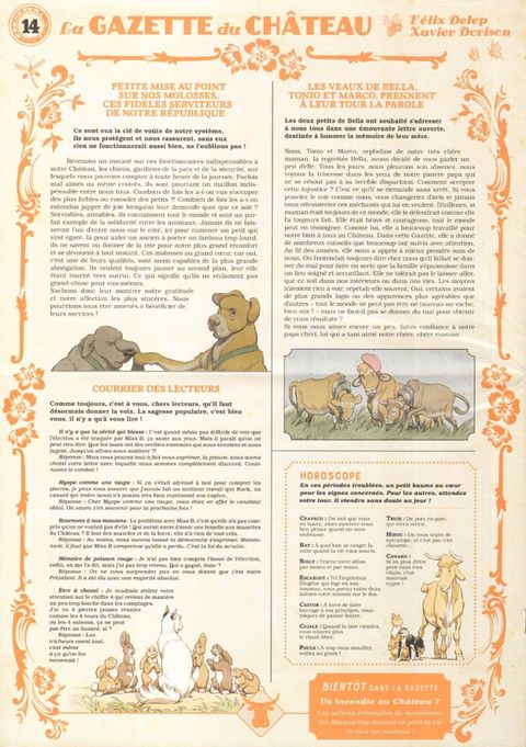 Miss B et ses camarades de lutte semblent avoir réussi ! Non seulement ils ont remporté l'élection que Silvio avait tenté de voler, mais ils ont aussi réussi à faire éclater la terrible vérité qui se cachait derrière la menace des loups. Le Mouvement des Marguerites est plus mobilisé que jamais pour renverser le taureau dictateur... mais c'est compter sans le refus catégorique de Silvio, qui s'isole de plus en plus et menace d'exécuter publiquement tout opposant à sa politique arbitraire. Rebutés par une escalade de violence sans précédent, les chiens eux-mêmes commencent à douter des ordres de leur maître... Miss B, César et Azélar auront-ils raison du cruel taureau ? Une vie juste et paisible est-elle seulement possible au Château ?