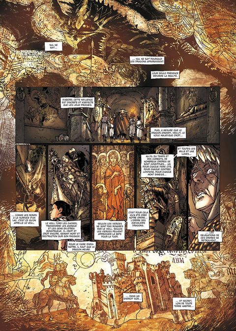 Une mystérieuse épidémie ravage la capitale du petit archipel. Les gens bavent, se contorsionnent, s'entretuent. Pour enrayer toute contagion, les prêtres décident de purifi er toutes les victimes dans de gigantesques brasiers. Mais s'agit-il réellement d'une épidémie ? Alatea se souvient des histoires que lui contait jadis sa grand-mère : l'apparition des dragons, la folie qu'ils ont engendrée et le combat à mort qu'ont engagé des chevaliers. Cette folie, sa grand-mère, l'appelait le « Veill ». Aujourd'hui, tout coïncide ! Mais personne ne semble croire Alatea. Pourtant, elle en est persuadée, un dragon pourrait bien être à l'origine de la folie qui déferle sur l'archipel. L'héritage cédé par sa grand-mère ne sera-t-il pas trop lourd à porter ?