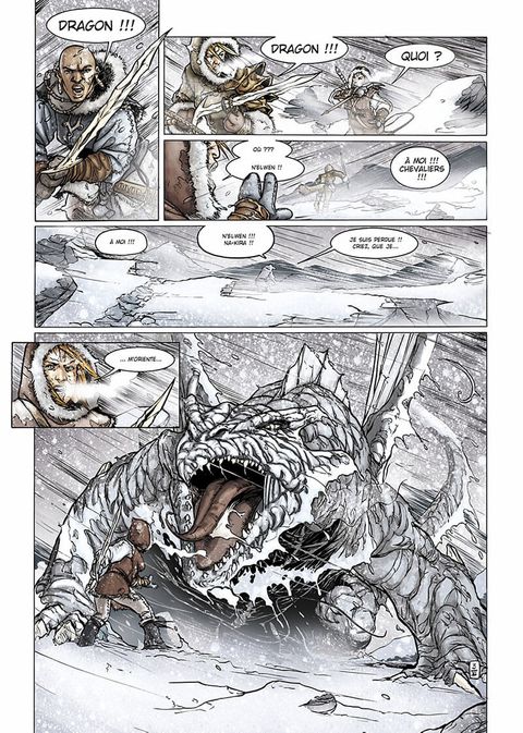 Envoyée avec d'autres chevaliers pour détruire un dragon tapi dans les hauteurs enneigées, la Chevalier Dragon Raiad est blessée et reccueillie dans un village de montagnards. Mais quand elle se réveille, c'est le cauchemar pour elle : tout le village est touché par le Veill, le mal mystérieux qui émane des dragons et que Raiad a été formée à combattre et à éradiquer dès son plus jeune âge. Un épisode fascinant servi par le dessin subtile de Sieurac et de l'écriture inspirée de Ange.