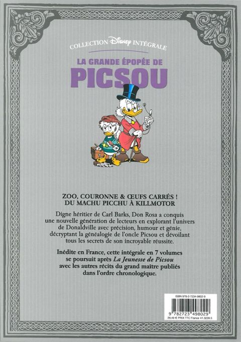 Réclamée à cor et à cri par les canardophiles, voici enfin la réédition de ces aventures cultes de l'oncle Picsou ! Cette biographie du personnage créé par Carl Barks a été construite à partir d'informations distillées au fil des histoires du grand maître. Il en résulte un concentré d'aventures extrêmement riches, drôles et vite devenues cultes qui valurent à leur auteur un Eisner Award en 1995. Prévue en sept volumes et après le très beau succès des deux premiers consacrés à la Jeunesse de Picsou, cette intégrale reprend avec le tome 3 l'ordre chronologique de parution des aventures du canard milliardaire créées par Don Rosa.