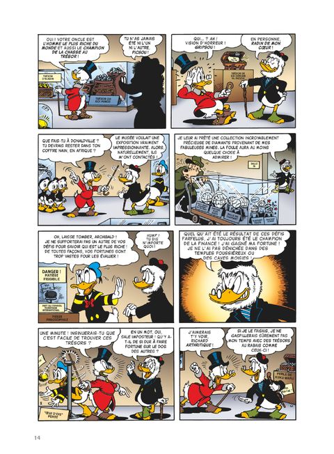 L’œuvre de Don Rosa dans un nouveau format !Créé par Carl Barks en 1947, Picsou, le canard le plus riche du monde qui aime à plonger dans son coffre-fort rempli de pièces d’or, s’est rapidement imposé comme un des personnages les plus intéressant de l’univers Disney. Pingre et colérique, il est le héros de magnifiques aventures devenues aujourd’hui des classiques (cf. Les âges d’or de Picsou). Pourtant c’est Don Rosa qui va marquer de son empreinte l’univers de Picsou. Ses récits sont un hommage constant au travail de Carl Barks dont il prolonge, complète et explique l’œuvre ; allant jusqu’à créer le fameux arbre généalogique de la famille Duck et surtout proposer l’histoire de la jeunesse de Balthazar Picsou. Avec des scénarios plus épiques et matures allant parfois jusqu'au drame, avec son style graphique complexe fourmillant de détails comiques et un ton sarcastique, Don Rosa a définitivement donné à Picsou son statut de personnage iconique. C’est cette œuvre majeure que nous vous proposons de (re)découvrir aujourd’hui avec cette magnifique collection en 10 volumes.
