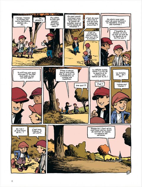 Dans « Pourris de Velrans », le second tome de La Guerre des boutons façon Berlion, le combat se prépare, et, chez les Longeverne, la mobilisation est générale ! La Guerre des boutons, 2e épisode. Avant de repartir au front, Lebrac, Gambette, Camus, La Crique, Grangibus et Tigibus, aidés de Marine et Geneviève, s'activent pour constituer un trésor de guerre riche en boutons, élastiques et bretelles. Même ce trouillard de Bacaillé participe à l'effort de guerre ! La possession de ce pactole et, bientôt, la construction d'une cabane secrète décuplent les forces des petits gars de Longeverne. Ces pourris de Velrans n'ont qu'à bien se tenir... Ce second album signe la fin de La Guerre des boutons, un extraordinaire récit d'aventures lu par des générations de Français et remarquablement adapté en bande dessinée par Olivier Berlion.