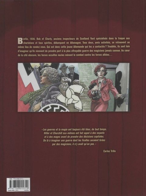 Berlin, 1936. Bob et Charly, deux anciens inspecteurs de Scotland yard, spécialisés dans la traque aux charlatans et faux spirits, débarquent en Allemagne. Tous deux, amis autrefois, se retrouvent au même lieu de rendez-vous. Quelle est cette jeune allemande qui les a contactés pour leur demander assistance ? Troublés, ils sont loin d'imaginer qu'ils viennent de prendre part à la plus effroyable guerre des magiciens jamais connue...