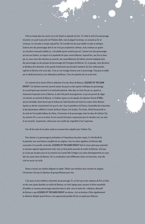 L'histoire principal et juste parfaite on apprend les bases et les origines d'azrael ce personnage mythique! À lire avant les knightfall obligatoirement !