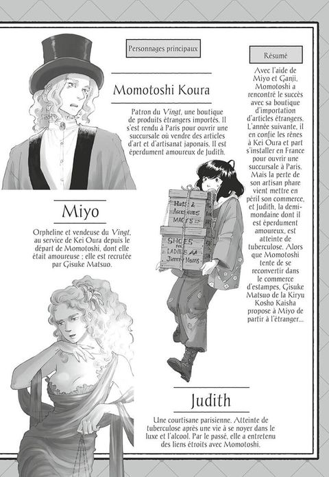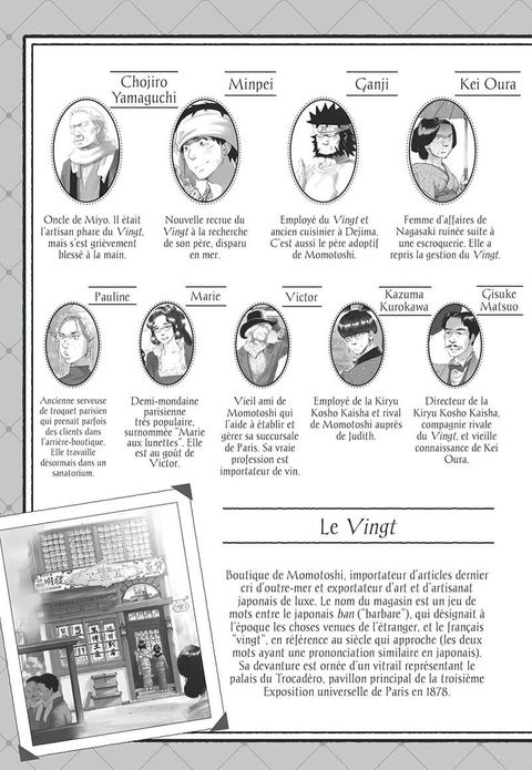1879, Nagasaki et ailleurs. Miyo n’a pas oublié Momotoshi, ni son rêve de partir à l’étranger. C’est un bon génie inattendu qui va exaucer son souhait : Gisuke Matsuo, le patron de la Kiryu Kosho Kaisha, l’invite à travailler dans sa boutique à Paris. Et Miyo quitte Nagasaki pour un long voyage de deux ans