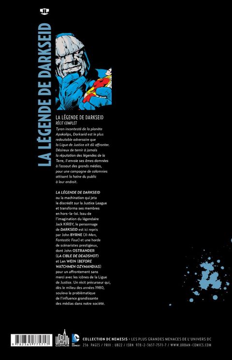 Tyran incontesté de la planète Apokolips, Darkseid est le plus redoutable adversaire que la Ligue de Justice ait dû affronter. Désireux de ternir à jamais la réputation des légendes de la Terre, il envoie ses âmes damnées à l'assaut des grands médias, pour une campagne de calomnies attisant la haine du public à leur endroit. (Contient Legends #1-6 + Jack Kirby's Fourth World #2-5 + Superman #3 + Adventures of Superman #426 + Action Comics #586)