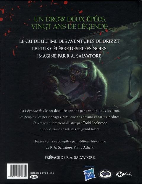 Le guide ultime des aventures de drizzt, le plus célèbre des elfes noirs, imaginé par R A Salvatore. La Légende de Drizzt détaillée épisode par épisode : tous les lieux, les peuples, les personnages, ainsi que des dessins et cartes inédites ! Ouvrage entièrement illustré par Todd Lockwood et des dizaines d'artistes de grand talent. Textes écrits et compilés par l'éditeur historique de R A Salvatore, Philip Athans.