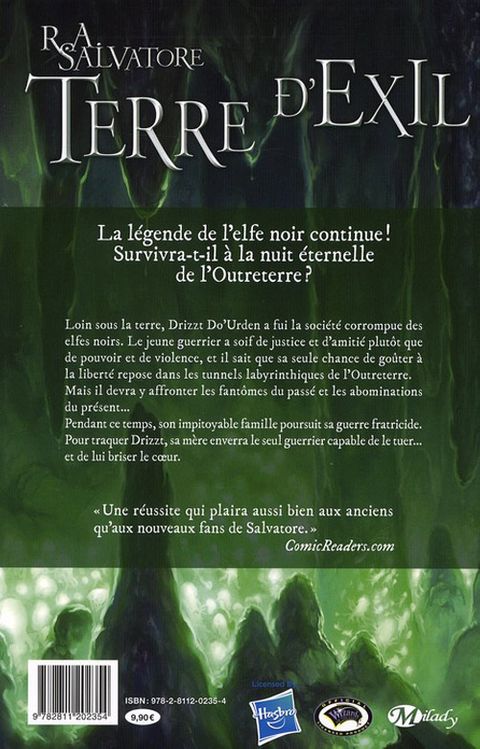 La légende de l'elfe noir continue ! Survivra-t-il à la nuit éternelle de l'Outreterre ? Loin sous la terre, Drizzt Do'Urden a fui la société corrompue des elfes noirs. Le jeune guerrier a soif de justice et d'amitié plutôt que de pouvoir et de violence, et il sait que sa seule chance de goûter à la liberté repose dans les tunnels labyrinthiques de l'Outreterre. Mais il devra y affronter les fantômes du passé et les abominations du présent...Pendant ce temps, son impitoyable famille poursuit sa guerre fratricide. Pour traquer Drizzt, sa mère enverra le seul guerrier capable de le tuer... Et de lui briser le coeur.