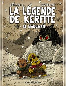Targ et Daric sont deux jeunes frères nimbos de la tribu Kaasico, installée dans les grottes de Gramatta. Un jour, en rangeant des affaires de leur grand-père le Chef Smohal, ils découvrent un vieux manuscrit qui, d´après les dires du vieux fou du village, les aidera peut-être à sauver leur peuple de la malédiction de la Légende de Kerfite et des terribles créatures appelées Ikokoys. Ils s´engagent alors dans un périple à travers leur monde glaciaire qui les mènera sur un chemin inattendu... Prévue en 2 tomes, La légende de Kerfite est une bande dessinée pleine d´action et de rebondissements. Benjamin G et Yvan Postel donnent vie à un monde original aux créatures attachantes, et nous entraînent avec talent et humour dans les mystérieuses aventures de Targ et Daric.