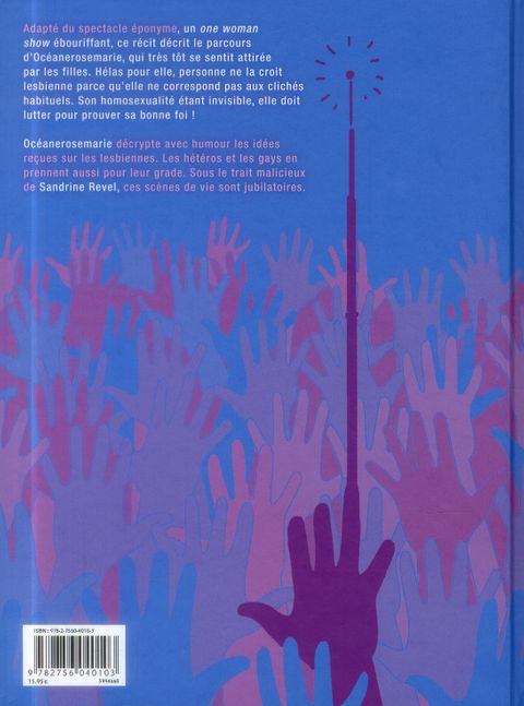 Océanerosemarie se sent très tôt attirée par les filles. Pourtant, personne ne la croit lesbienne. Trop féminine ! Oui, elle aime les femmes mais aussi le rouge à lèvres et les robes à fleurs. Du club de foot féminin à la boîte ultrabranchée Le Pulp, elle décrypte sous le trait malicieux de Sandrine Revel les idées reçues sur les lesbiennes. hétéros et gays en prennent aussi pour leur grade ! Jubilatoire.