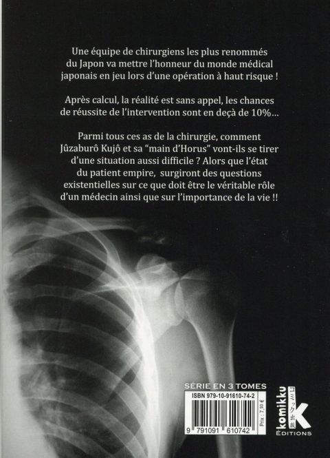 Horus est le nom latin d'une des plus anciennes divinités égyptiennes, le dieu faucon. Il est notamment connu pour son pouvoir de guérison. Cette faculté divine se retrouve entre les mains de Jûzaburô Kujô, chirurgien à l'hôpital général d'Ôedo. Malgré un environnement de travail peu favorable et de nombreux soucis avec sa hiérarchie, Jûzaburô n'a qu'un objectif en tête : sauver la vie de ses patients ! Bien qu'il soit prétentieux, séducteur, arrogant et imbu de lui-même, son talent de chirurgien reste indéniable. Un personnage qui nous rappelle très clairement le fameux docteur House.