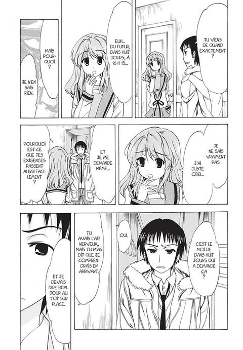 Une Mikuru arrivée de huit jours dans le futur surgit sans crier gare ! Elle ne sait pas pourquoi elle est ici, et affirme que c'est Kyon lui-même qui l'envoie. C'est à n'y rien comprendre ! Retrouvez également dans ce volume la première partie de l'arc ""Le complot de Haruhi Suzumiya"".