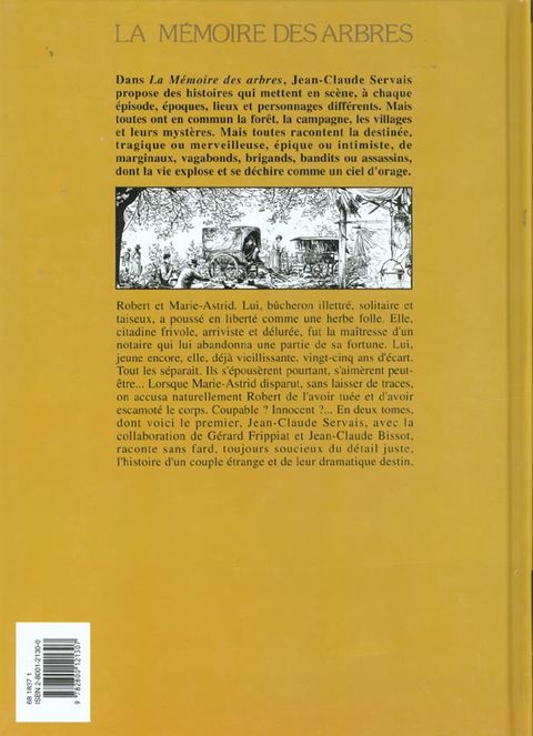 Robert et marie-astrid. Lui, bûcheron illettré, solitaire et taiseux, a poussé en liberté comme une herbe folle. elle, citadine frivole, arriviste et délurée, fut la maîtresse d'un notaire qui lui abandonna une partie de sa fortune. lui, jeune encore, elle, déjà vieillissante, vingt-cinq ans d'écart. tout les séparait. ils s'épousèrent pourtant, s'aimèrent peut-être. lorsque marie-astrid disparut, sans laisser de traces, on accusa naturellement robert de l'avoir tuée et d'avoir escamoté le corps. Coupable ? innocent ?. en deux tomes, dont voici le premier, jean-claude servais, avec la collaboration de gérard frippiat et jean-claude bissot, raconte sans fard, toujours soucieux du détail juste, l'histoire d'un couple étrange et de leur dramatique destin.