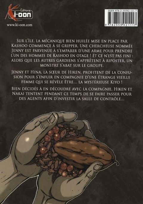Sur l'île, la mécanique bien huilée mise en place par Kashoo commence à se gripper. Une chercheuse nommée Jenny est parvenue à s'emparer d'une arme pour prendre l'un des hommes de Kashoo en otage ! Et ce n'est pas fini : alors que les autres gardiens s'apprêtent à riposter, un monstre s'abat sur le groupe. Jenny et Hina, la soeur de Hiken, profitent de la confusion pour s'enfuir en compagnie d'une étrange vieille femme qui se révèle être... La mystérieuse Kiyo ! Bien décidés à en découdre avec la compagnie, Hiken et Nakai tentent pendant ce temps de se faire passer pour des agents afin d'investir la salle de contrôle...