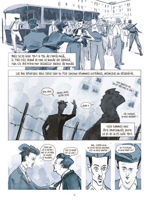 À travers différents destins croisés, le camp d'internement de la Muette, à Drancy, raconté pour la première fois en bande dessinée. 20 août 1941, la police française se prépare à arrêter 5000 habitants du 11e arrondissement de Paris, tous de confession juive… Quelques jours plus tard, ils seront 4230 hommes à être emprisonnés dans la cité de La Muette à Drancy.Durant trois années, la cité verra ainsi passer 67  000 hommes, femmes et enfants en partance pour les camps de la mort… Parmi eux, Béno, Nissim, Jean, Chil, Chana et bien d’autres. Des noms qui sont autant de victimes de la logique d’extermination nazie – et de ses complicités françaises. Des destins qui se croiseront dans un quotidien rythmé par les rafles et déportations qui emplissent et vident alternativement le camp…À travers ces histoires, Valérie Villieu et Simon Géliot donnent pour la première fois à voir la vie du camp de La Muette  : son organisation, son évolution et le quotidien des interné.e.s qui y sont passés. Un quotidien marqué par la souffrance, la lutte pour survivre mais aussi la solidarité et la foi en un avenir meilleur.