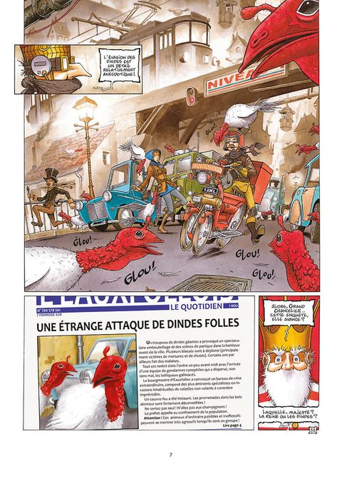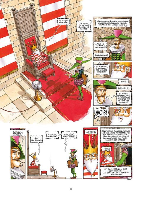 La reine a disparu ! Qui l'a enlevée ? Le roi aimerait savoir mais l'inspecteur Roussin auditionne, questionne, perquisitionne, emprisonne, impressionne mais ne dit mot de l'enquête à personne. La seule chose que l'on sait, c'est que tout le monde, sans exception, est suspect, même le roi ! Pendant ce temps, proches des murs du palais, des dindes sauvages géantes envahissent la ville et perturbent ce qu'il reste d'ordre établi.